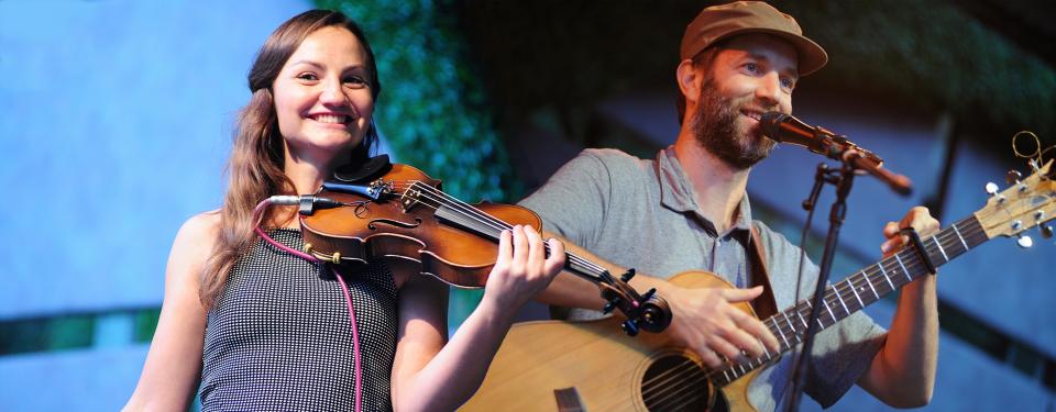 Tim McMillan & Rachel Snow are a duo from Melbourne, Australia, based in Germany and currently immersed in an endless tour entertaining and delighting audiences across the world. Tim is a percussive fingerstyle guitarist and outlandish storyteller and Rachel an exceptional violinist and accomplice in Tim's whimsical narrative.